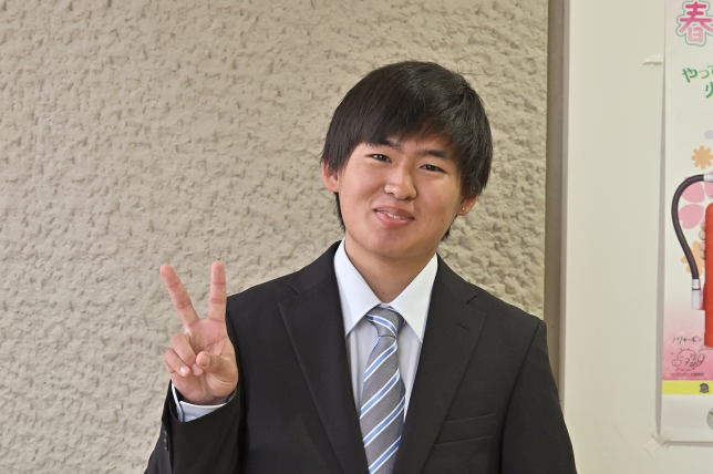 先生にネクタイの結び方を教えてもらったという新入生の三森柚輝さん。母親が保育士で本学の卒業生であり、井上副学長の教え子でもあるとのこと。そのため本学の良さをいろいろ聞いており、早くから本学を第一志望にしていたそうです。