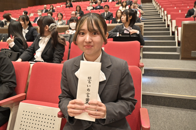 壇上で「誓いの言葉」を述べたのは、芦澤優衣さんです。子どもたちが安心して暮らせる平和な環境の大切さを思い、笑顔で自分らしく過ごして、人としてのあたたかさや思いやりを大切にしていきたいと、明るい未来への抱負を述べました。