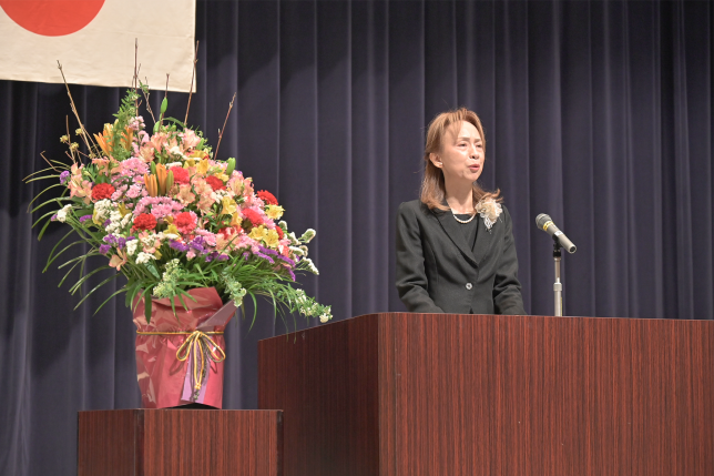井上副学長は式辞の中で、変化の激しい昨今の社会状況に触れ「社会に臨機応変に対応できるよう、人とのつながりを大切にすることで新しい知識や視点を得てほしい」と新入生を激励しました。
